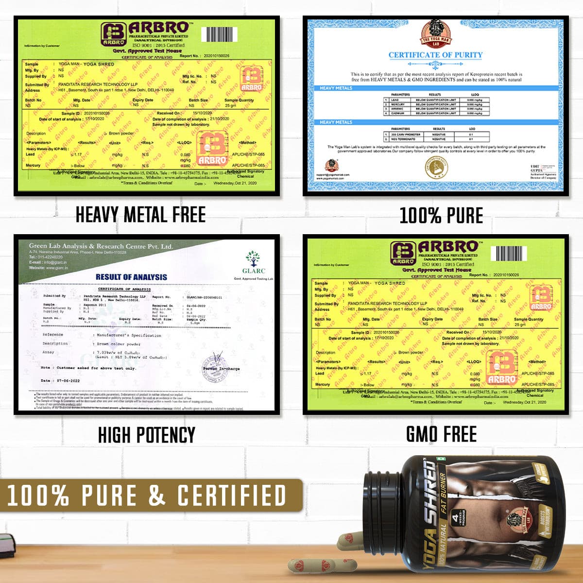 The Yoga Man Lab adhere to regulatory limits set by the FDA and WHO. Heavy metal contamination can occur at farms or during manufacturing, which can lead to severe health issues such as respiratory problems, neurological disorders, kidney damage, and cancer.